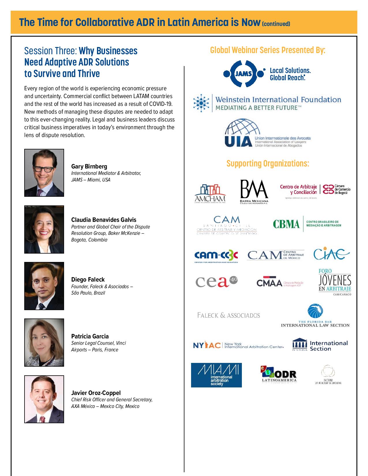 Este programa explorará las oportunidades, desafíos y tendencias sobre las resoluciones de conflictos y gestión en Latinoamérica.