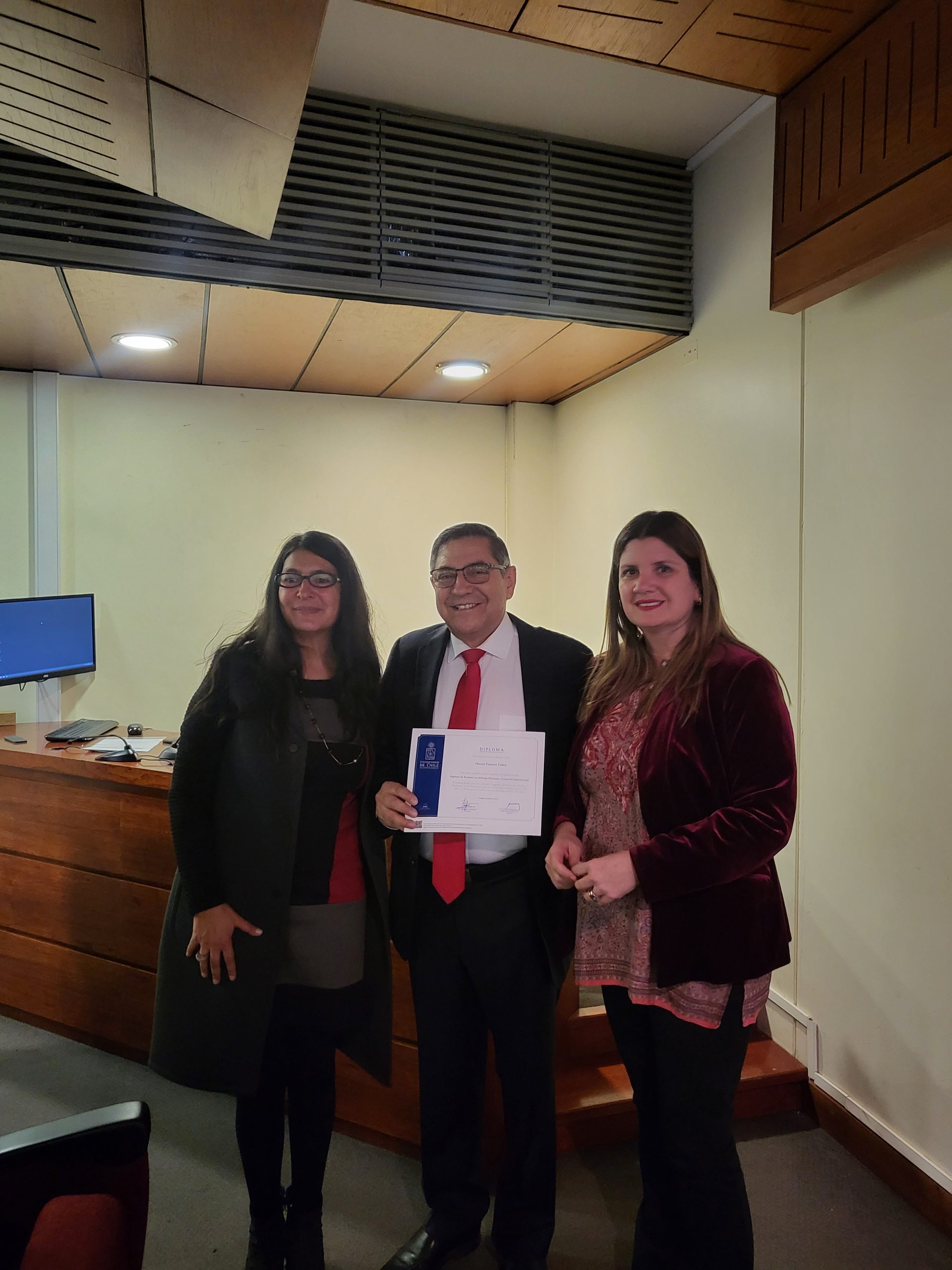 La ceremonia de cierre del diplomado tuvo lugar presencialmente en el Auditorio Alessandri de la Facultad de Derecho de la Universidad de Chile el 28 de septiembre de 2022.