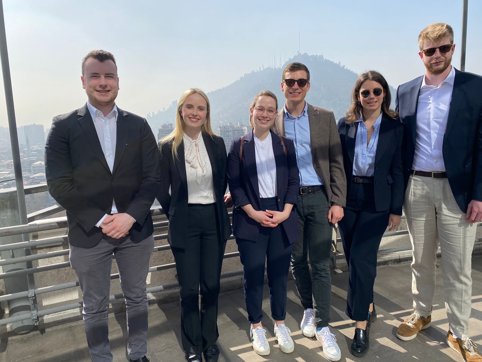 La delegación (coordinada por María Gabriela de Abreu del Heidelberg Center para América Latina) la integraron Noëmi Simon, Tobias Thomer, Moritz Böbel, Laura Korn, Tim Fischer y Theresa Hoessl, quienes previamente sostuvieron una reunión en el Centro de Derecho Ambiental de la Universidad de Chile, junto a Claudio F. Osses Garrido.