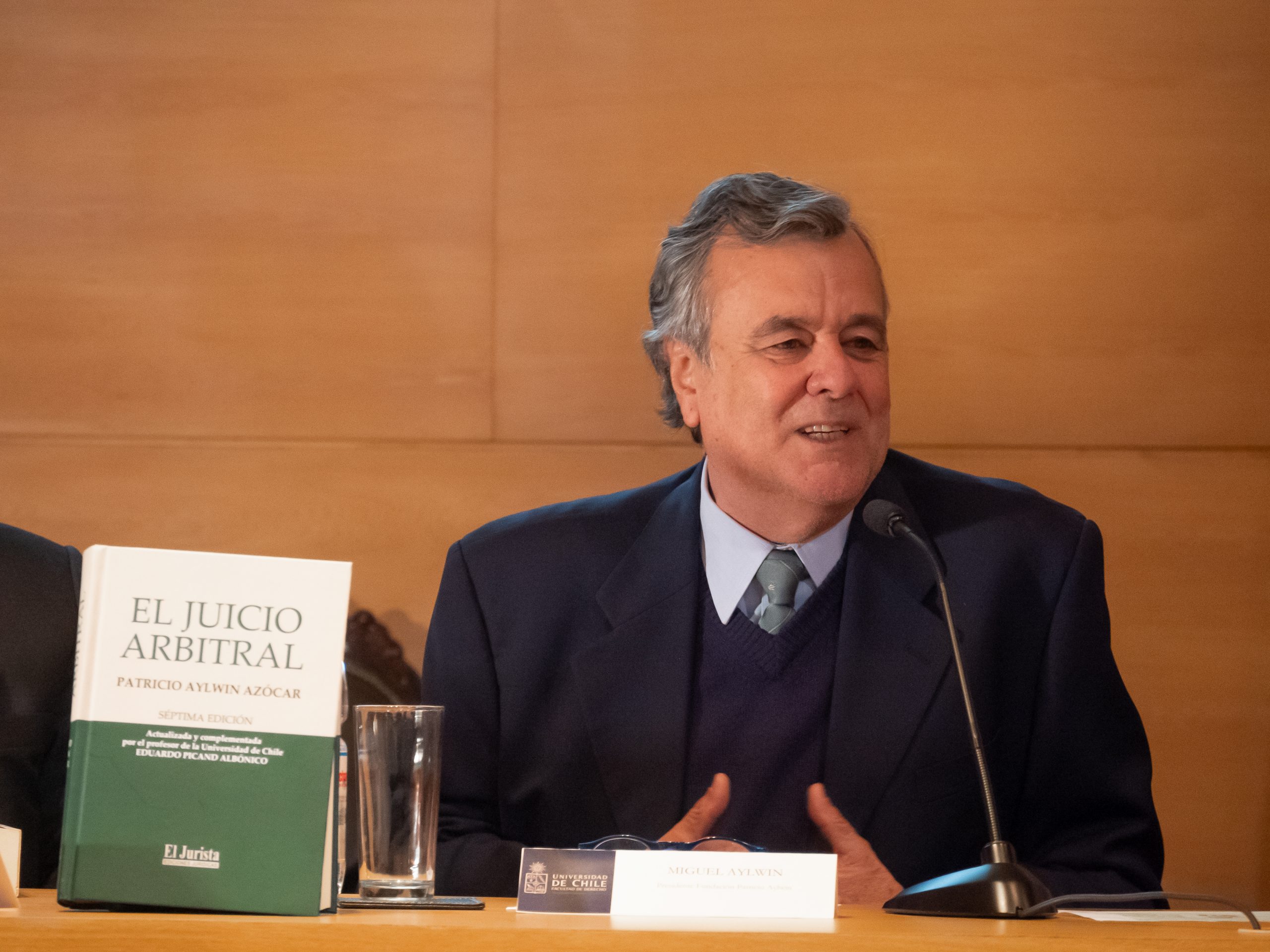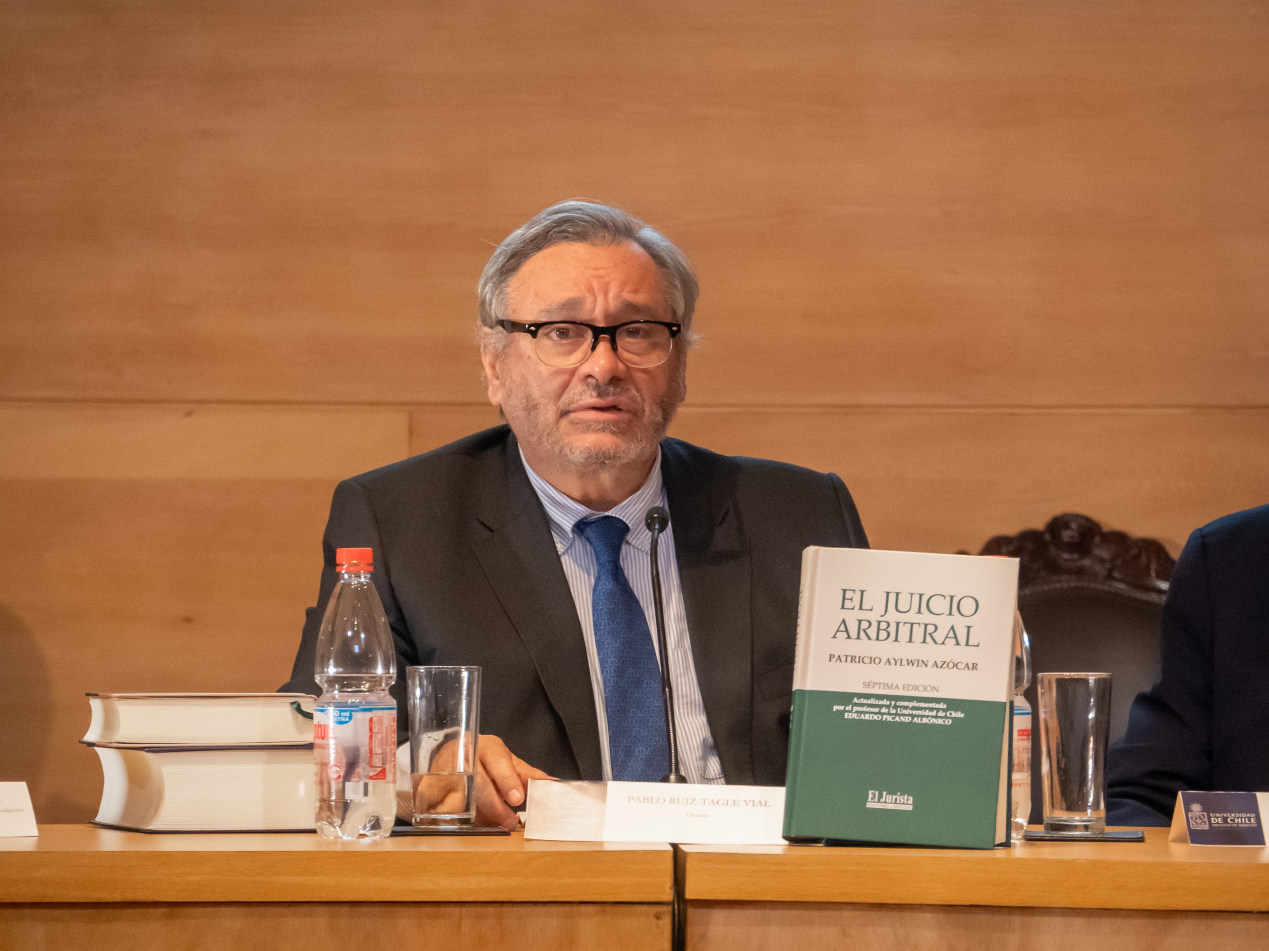 En sus palabras inaugurales, el Decano de la Facultad de Derecho de la Universidad de Chile, Dr. Pablo Ruiz-Tagle Vial, sostuvo que «El Juicio Arbitral» “es una de las obras jurídicas más importantes que se han escrito en nuestro país”. Respecto al autor, recordó que “Patricio Aylwin estuvo ligado a nuestra Facultad por muchas décadas: fue alumno y profesor, incluso Director de Escuela, y llegó a ser Profesor Emérito, que es la más alta calidad y distinción que puede tener una persona en relación con la Universidad de Chile”. Sobre el arbitraje, añadió que “gana cada día más espacio en la resolución de los conflictos. Es una forma de destrabar las dificultades que existen entre las personas y que no siempre el Estado puede ayudar a resolver”. En referencia a las citadas palabras de los profesores Barriga y Benvente, remarcó que “80 años después, estas palabras son igualmente válidas y verdaderas y por eso le agradecemos a este distinguidísimo egresado y licenciado de la Facultad de Derecho el haber dejado esta obra entre nosotros y haber, también, dado el ejemplo de su servicio público a nuestro país”.